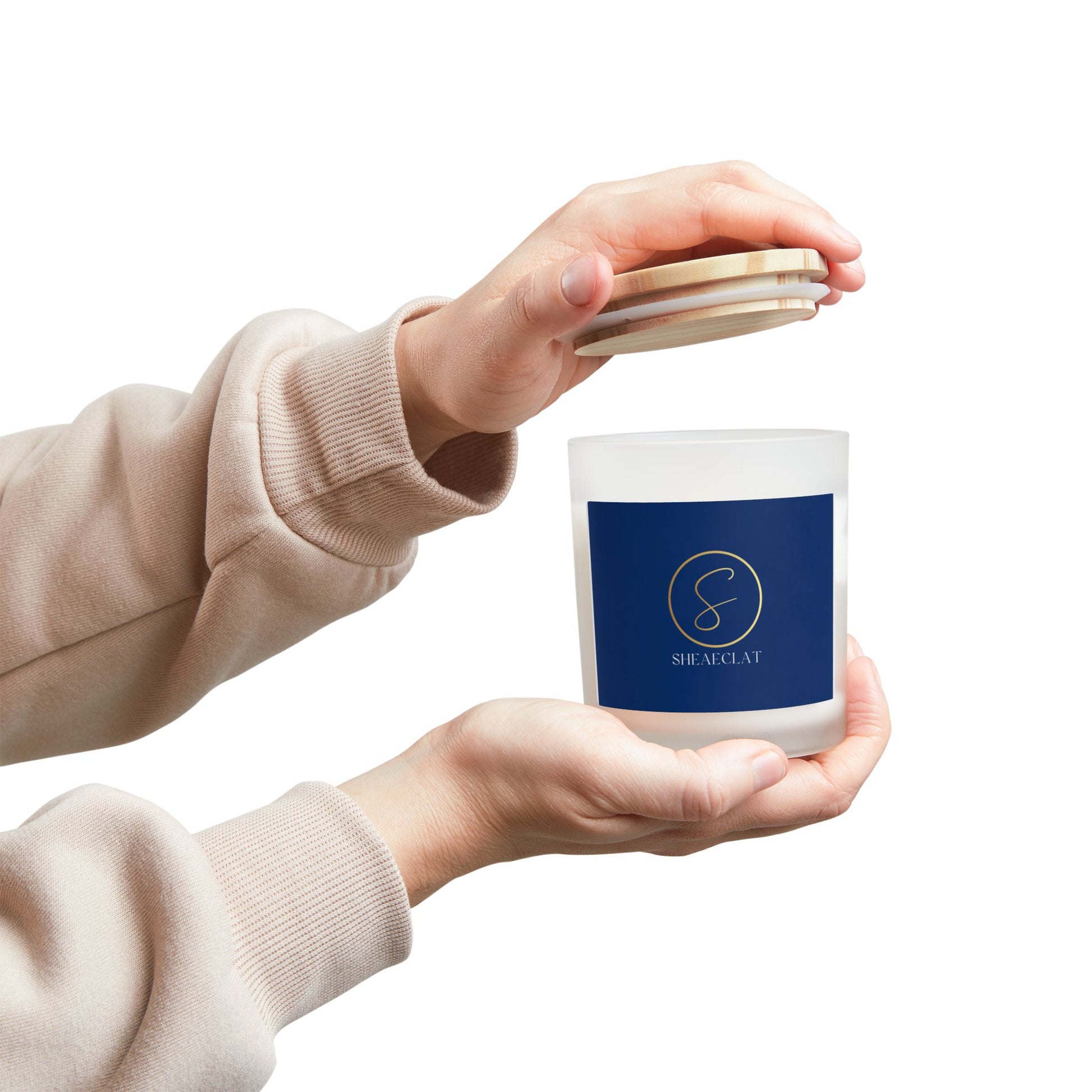 "Shea Eclat Gold Logo" Frosted Glass Candle, 11oz