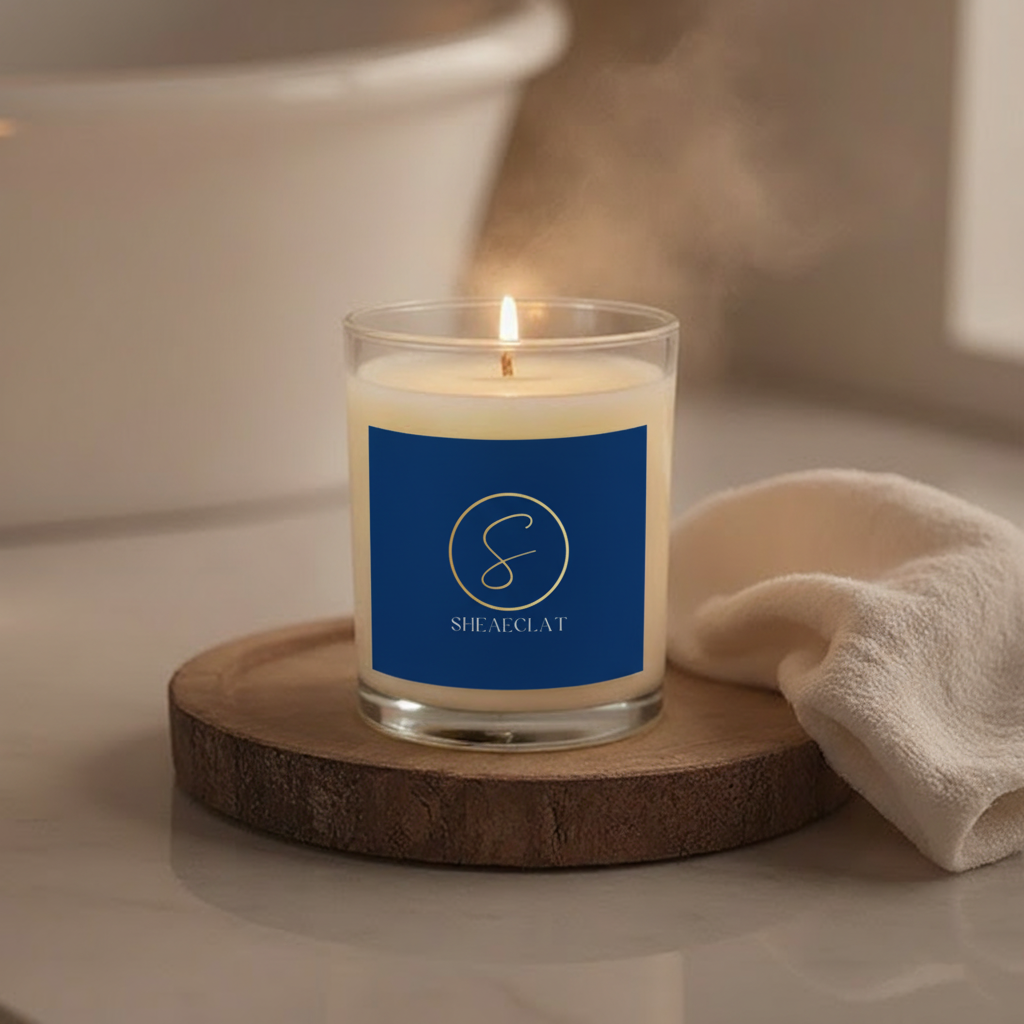 "Shea Eclat Gold Logo" Glass Candle, 11oz